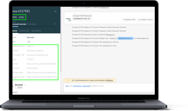- Моментальный прием и отправка сообщений - Показываем статус он лайн ( повышаем рейтинг аккаунта) - Принимаем сообщения с профиля авито (без объявлений) - Принимаем системные сообщения (отклик на вакансию, трек номер доставки и др) - Поддерживаем отправку PDF файлов - Удобный интерфейс для работы с компьютера или с телефона
